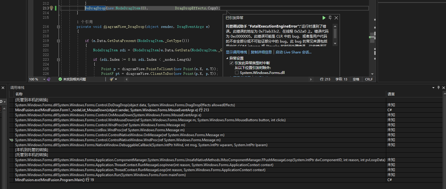 | MindFusion Forums › Diagramming Components › Windows Forms › DoDragDrop FatalExecutionEngineError |