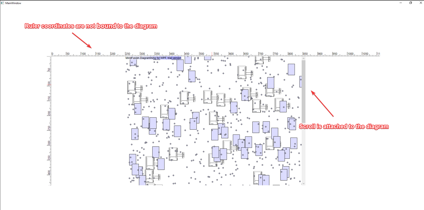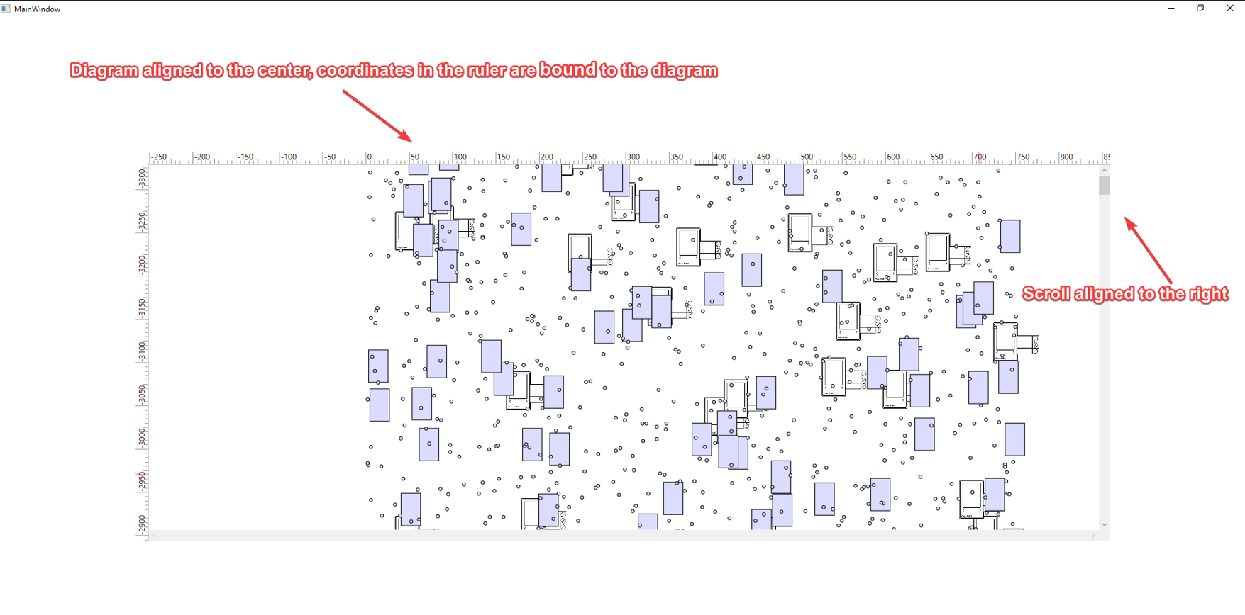Please refer to the projects that I've attached in the previous topic, as I also have some issues with scroll and ruler alignment. Before the update Diagram was aligned at the center by default, with the scroll bar being attached to the right side of the ruler and coordinates of the ruler were bound to the diagram.