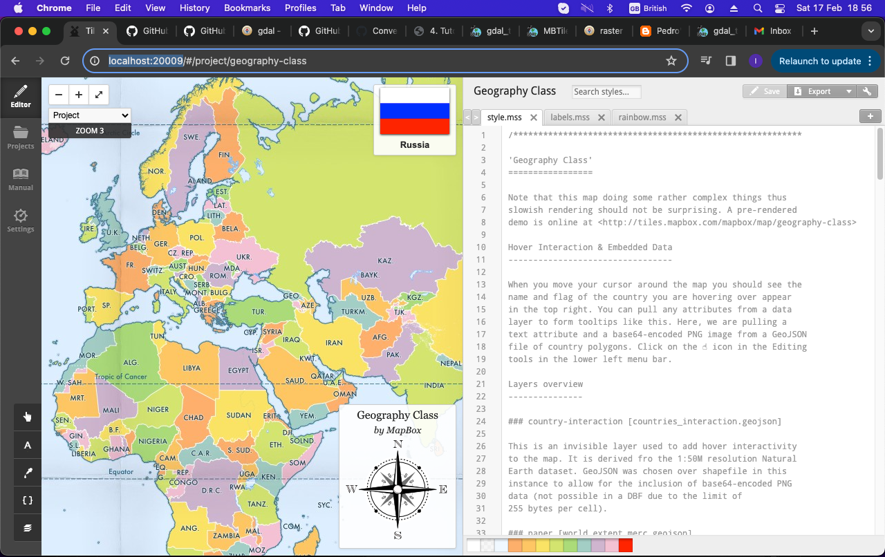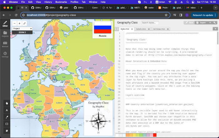 TileMill runs under Unix-like machines (Linux, MacOS) and uses the browser as UI interface. The readme notes list the row of commands to run to install the application. It runs on your local machine at http://localhost:20009/