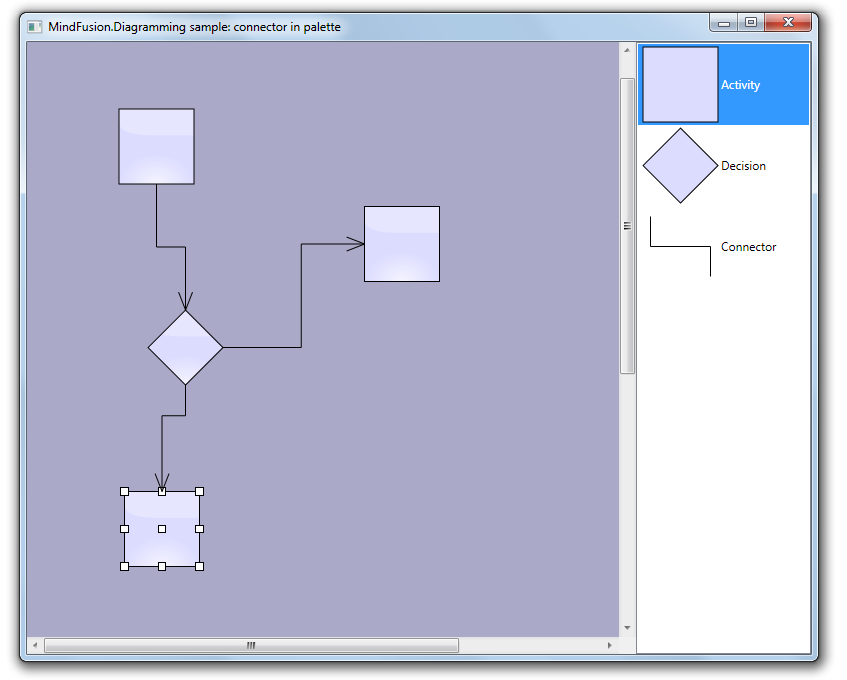 In this post we show how to create diagram links via drag-and-drop operation from a NodeListView used as a palette. Since the NodeListView control can contain only DiagramNode objects, we will create a custom node shape representing a connector. Once the dummy connector node is created, the NodeCreated event handler will replace it with a DiagramLink. In addition, the handler will find nearby nodes and automatically connect the link to them.