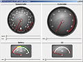 This sample illustrates a set of Oval gauge controls styled with custom templates in order to achieve the look of a car dashboard. In addition, the sample demonstrates how to embed gauges within each other.