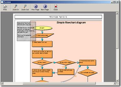 The PreviewDiagram method displays a print preview window. An extended version of this method, OpenPreviewWindow, gives you more control over the preview window position and attributes. The PrintOptions structure is used to specify various visualization settings, both for printing and print preview. It also exposes the captions of the print preview window and toolbar buttons as properties. That allows you to localize / internationalize your end-user application.
