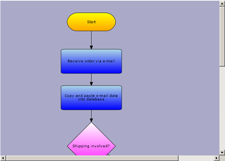 Add the following code to add some ShapeNodes to the diagram. ShapeNode objects can be drawn as various geometric shapes, as set through their Shape property. There are over 100 predefined shapes exposed as static members of the Shapes class. The Shape property can be set to one of the predefined shapes: RoundRect, Rectangle, Ellipse, Process, Procedure, Delay and much more.