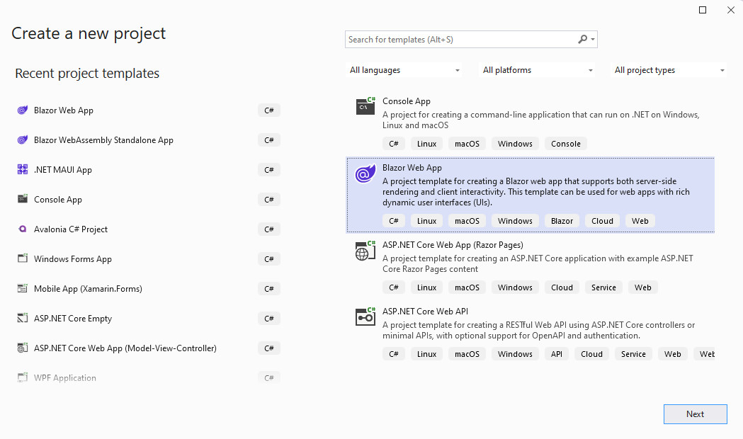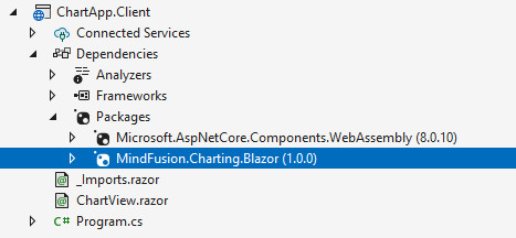 Then you can proceed and install the Charting library from NuGet as explained earlier. Note: You need to add the Blazor Charting package only to the .Client project: