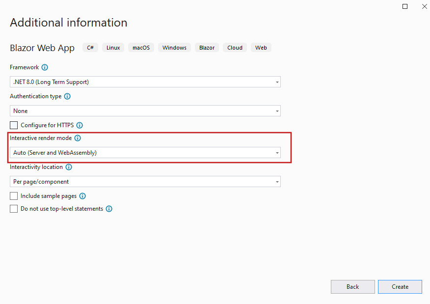 as long as you set the “Interactive render mode” option to WebAssembly or Auto (Server and WebAssembly):
