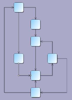 FlowchartLayout recognizes program code -like patterns in the graph, such as loops, sequences and if/switch branchings, and arranges them recursively. FlowchartLayout could be used to arrange other types of graphs as well, though with some restrictions. For example it treats all back links as loops in the code, and expects that they are nested - loop links starting closer to the stop node should end closer to the start node. Another similar restriction is that there shouldn't be any cross-links that connect different branches of a decision sub-graph.