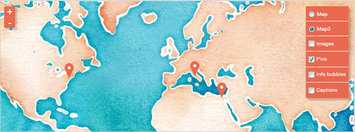 A map with the zoom controller (on the left) and the layer controller (on the right).
