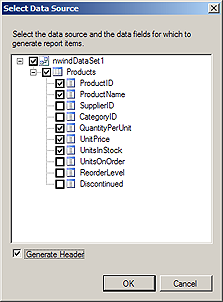 Once the data range is bound to a data source, you can associate the report items contained in that data range with individual fields in the bound data member by assigning the name of the field to the item's DataField property. In the example, if we assume that we have a label label1 within the data range, we can associate this label with the 'FirstName' field in the Employees table by assigning 'FirstName' to the label's DataField property: