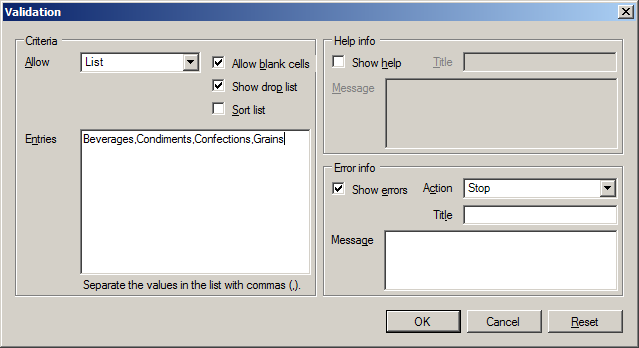 ExampleThe code below demonstrates how to display the validation form for an existing CellRange instance.