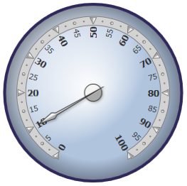 Gauge controls can contain more than just one scale. A common scenario is an oval gauge containing several concentric scales displaying different measures. The following example illustrates an oval gauge control with two concentric scales: