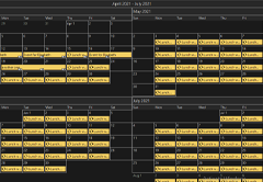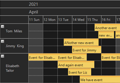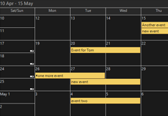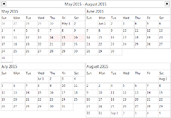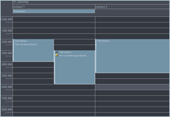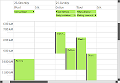 Themes are complete sets of styles and attributes that can be applied to the calendar and its views. The themes contain values for all properties in the MonthSettings, TimetableSettings, ListViewSettings, and so on, defining the appearance of the various calendar views. Scheduling for WPF comes with several predefined themes: Standard, Windows2003, Silver, Lila and Vista. Use the Calendar.Theme property to apply a specific theme.