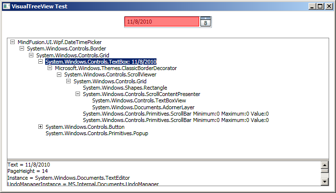 ExampleThe following XAML example demonstrates how to use of the VisualTreeView to inspect a DateTimePicker object.