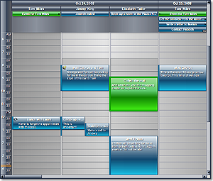 Set the CurrentView property of the Calendar class to Timetable to select the timetable view. This view displays the allotment of resources to distinct hours of a day; the columns in this view represent dates, tasks, locations, contacts or resources. The columns can be grouped by location, task, contact or resource. Each row represents an hour or a custom time interval. The cells in the view display information about the schedule items allocated to the task, contact, location or resource for the specific time interval.