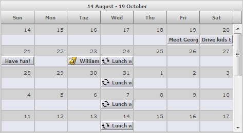Calendar in WeekRange view with the Silver theme.