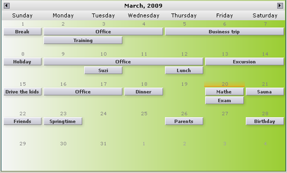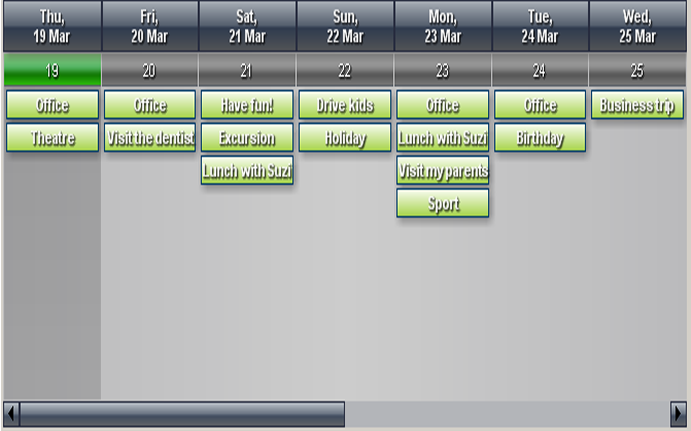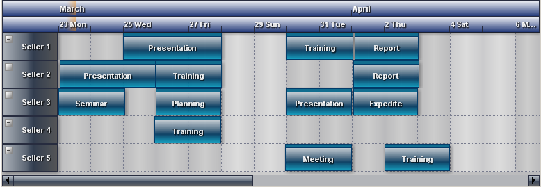 Screenshots of schedules and calendars created with the MindFusion.Scheduling for WinForms component.