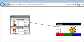 This sample shows how to build table nodes that have multiple cells and use cell spanning and how to connect them.