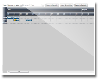 The ResourceView displays the distribution of items over a period of time for particular contacts, locations, tasks or resources. The view displays a single row for each individual contact, location, task or resource and up to three timelines.