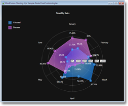 MindFusion.Charting for Wpf provides developers with an easy way to add line, bar, radar and pie charts to their Wpf applications. The control supports data binding, unlimited number of series and legends, fully customizable appearance. A new type of charts have been added to the control - the radar chart. Here are details about the new chart control and the other new add-ons: