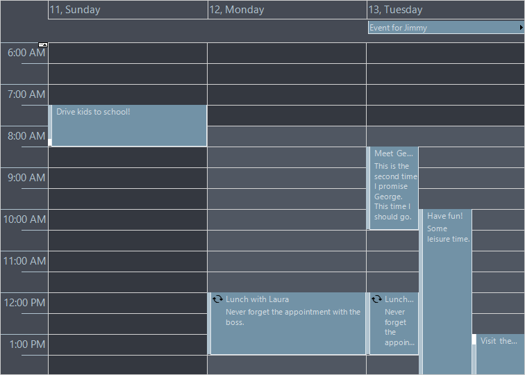 - Enable the ExtendedCurrentTimeMarker property of TimetableSettings or TimelineSettings to make current-time marker span the full extent of timetable / resource view (instead of only header area).