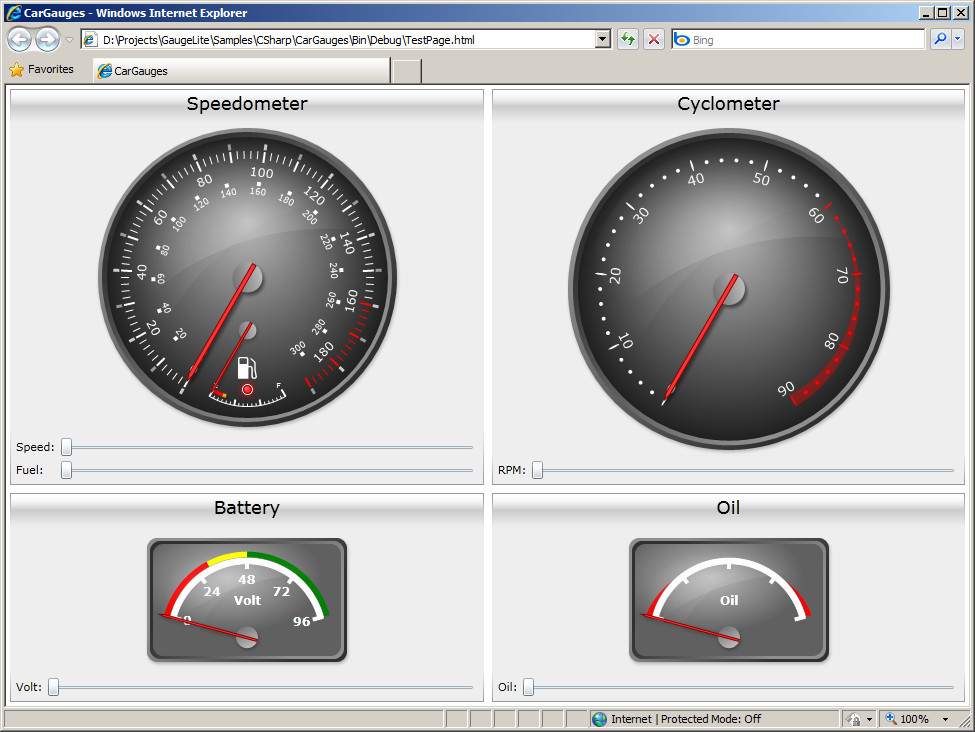 ComprarCapturas de pantalla de medidores creados con el componente MindFusion.Gauges para Silverlight que es parte del componente Charting para Silverlight.