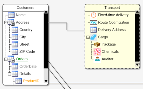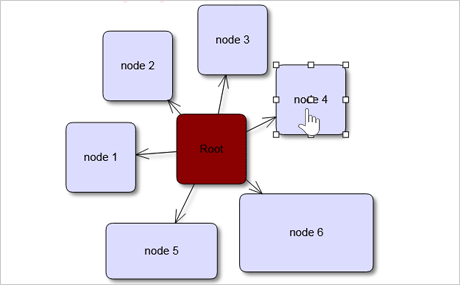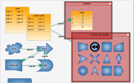 cualquier forma y tamaño - usted puede crear sus nodos personalizados o utilizar cualquiera de las formas predefinidas de los nodos. Los nodos pueden ser tablas, contenedores o nodos compuestos. Cada nodo puede