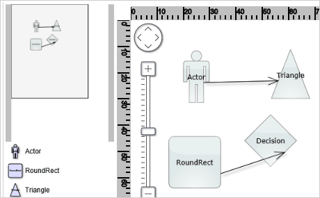 Además del control de diagrama principal de ASP.NET MVC, obtiene varios controles complementarios: una regla con una unidad de medida personalizable; un NodeListView que admite arrastrar y soltar los nodos de diagrama incluidos en el área de trabajo del diagrama; un control de zoom con pasos personalizables; un control de descripción general, que brinda una valiosa ayuda al representar diagramas grandes y complejos.