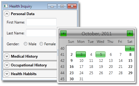 Elcontrol de Calendario representa una tabla de tiempo, que se puede personalizar para mostrar un solo mes, con sus días, un año con sus meses, un día con sus horas y un siglo, con sus años. Es compatible con selección múltiple de elementos en cualquiera de las vistas, varios eventos para la interacción del usuario y una interfaz fácil de personalizar. Cambiar las vistas es también fácil - sólo con un clic del ratón.