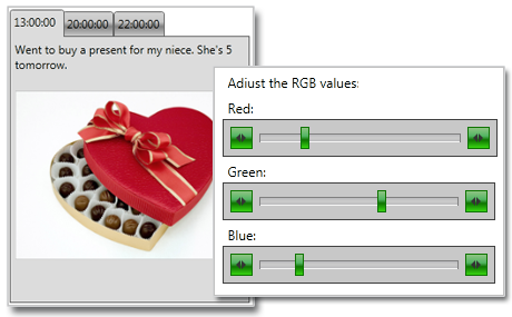 El control Deslizador puede seguir el cambio de un valor en un intervalo dado o el cambio en el inicio y el final de una gama hecha de dos valores. El control puede mostrar una etiqueta, marcas y mediciones y soporta estilos y plantillas. Todos los valores de aspecto y los datos se pueden personalizar.