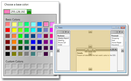 Elcontrol admite colores predefinidos estándar y la posibilidad de crear colores personalizados. Es fácil de usar, con un montón de eventos proporcionados y la posibilidad de personalizar totalmente el aspecto del control.