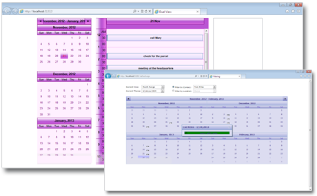 Cuando se trara de interactuar con el calendario, todo es posible. usted puede crear, mover, modificar y eliminar citas sobre la marcha. Usted puede arrastrar y soltar para crear y cambiar elementos del calendario rápido y fácil. Puede definir tool-tips para mejor usabilidad así como navegar rápidamente entre las fechas del calendario con el ratón.