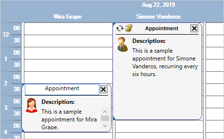 Los usuarios pueden modificar y crear elementos interactivamente, la edición de elementos en marcha también es soportada. El control cuenta con dos formularios auxiliares - para cerar y editar citas y eventos recurrentes. También hay selección de elementos simple y múltiple. El desplazamiento y el desplazamiento automático mientras se arrastra el ratón son soportados en todas las vistas, así como operaciones de portapapeles.