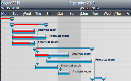 MindFusion.Scheduling contiene tres componentes que permiten integrar el conjunto completo de características para la administración de proyectos en su aplicación. Son el Diagrama de Gantt, la cuadrícula y los controles de vista de árbol. Se utilizan para construir un cuadro de actividades y un cuadro de recursos, que se puede utilizar para crear una solución completa de administración de proyectos. Puede crear tareas y dependencias entre ellas, agregar recursos y vincularlos a las actividades. Los controles admiten modelos personalizados donde usted define las dependencias, recursos y asignaciones.