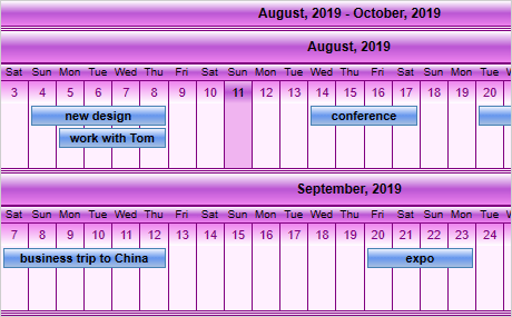 Cada calendario se puede personalizar por completo a través de su estilo. La apariencia de los elementos se cambia con plantillas de elementos. Hay efectos especiales para la cabecera, los elementos y el texto. Usted tiene una rica selección de estilos de pluma y brocha. Puede cambiar el aspecto de todo el calendario en un minuto al cambiar el tema.